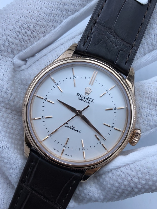 (준비완료/특급배송)NO.628/KZ공장 롤렉스 셀리니 화이트다이얼 브라운가죽 로즈골드